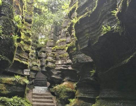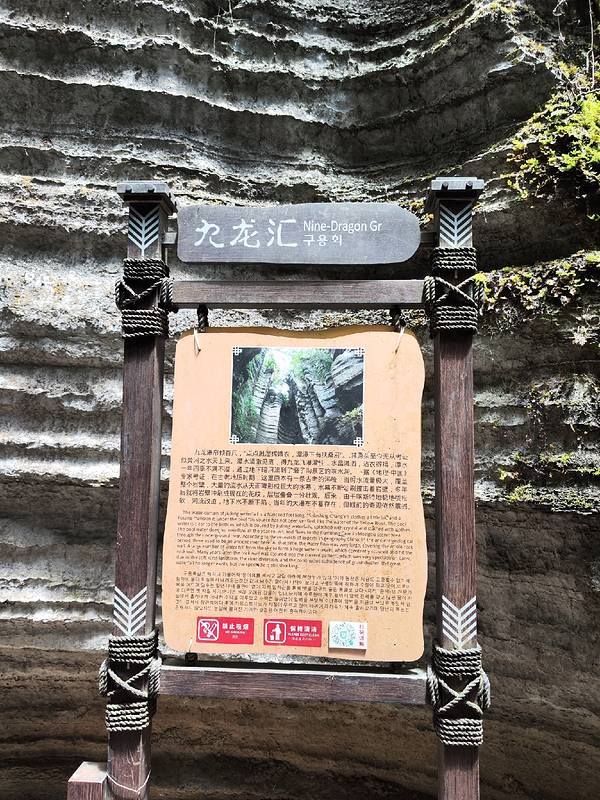 我们在梭布垭石林游玩了其他两个景点青龙台跟莲花寨之后,最后才来的这个九龙汇景点,这里离着游客服务中心最近,景区很容易玩,就是下去看瀑布,然后再走上来,也就半个小时就能玩完,其实这个瀑布也就那样吧,...