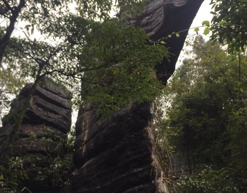 九龙汇,梭布垭石林景区第三个景点。景点不大,看地图就知道这里是一个圆圈,绕一圈是最佳方案。如果前面玩的太累,只想看看九龙汇,可以进入景点后走左边,没多远就能看到九龙汇,看完原路返回。九龙汇非常壮观,刀削般的石壁上有挂着一条瀑布,夏天去时水量太小,瀑布变成小溪流,有点小遗憾,下次争取春天或者秋天,再来看看。