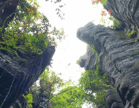 恩施梭布垭石林九龙汇景观区:位于梭布垭石林风景区内,进入九龙汇核心景点,从下向上抬头仰望,在一...