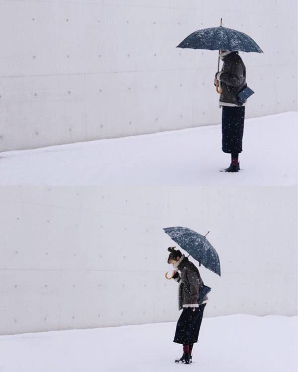3⃣️找一片空地,最好是一个夹角,利用雪地的空旷,拍出精致的的皂片!搭配上一把纯色的🌂黑伞,轻松自然~