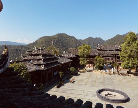 白天和晚上的风景都很好,山上有餐厅和住宿,很遗憾没有住一晚。冲着瑶池去的,中午在山脚吃的午餐,民风很淳朴,商业氛围不重。喜欢悠然自得度假心态的,可以来这。游览的区域并不多,木质花瑶楼,无边泳池…好像就没了,哈哈哈,山上的吃食也不是很贵,晚上有活动,蛮热闹~