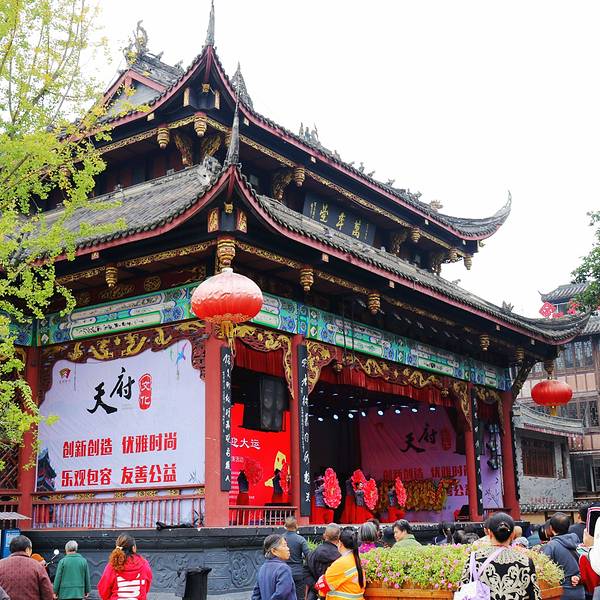 万年台,舞台万年。作为洛带古镇文化艺术交流演绎的舞台,随时都能观赏到各种各样的表演,台上演员酸甜苦辣的剧情演绎,台下观众一碗盖碗茶慢慢的观看着,如此安静和谐。仿佛真能体会那戏如人生的意境……