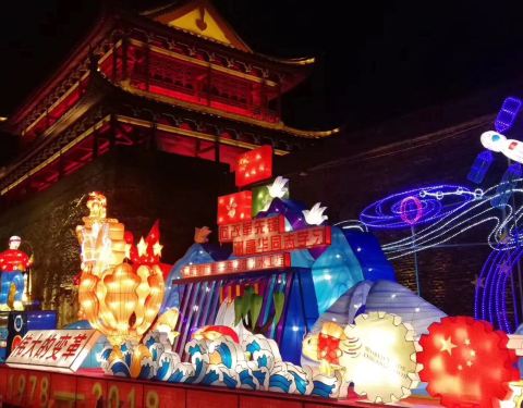 灯光下的天王塔特别有气势,游客纷纷拍照。用手机拍摄的照片,感觉一般,与现场感受到的差距蛮大