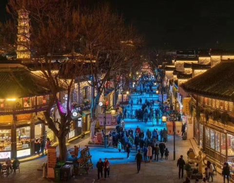 进到水亭街历史街区,就会看到天王塔。灯光下的天王塔特别有气势,游客纷纷拍照。用手机拍摄的照片,感觉一般,与现场感受到的差距蛮大。
