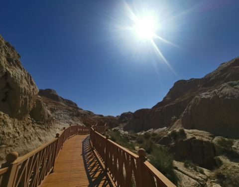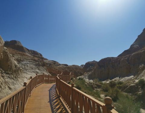 这里从2019年开始变成卖门票的景点了,个人觉得比克拉玛依的魔鬼城要好,虽然景点不大,但是有魔鬼城有悬崖,悬崖上有燕欧的巢,悬崖下就是乌伦古海,这里是鸟儿的栖息地,感觉上比克拉玛依的魔鬼城有生气。而且这里有哈萨克的毡房,可以参观和用餐,蒸面超级好吃。 魔鬼城的栈道就建在魔鬼城里面,可以近距离观察,很棒。