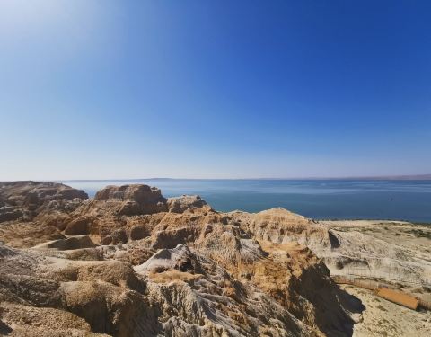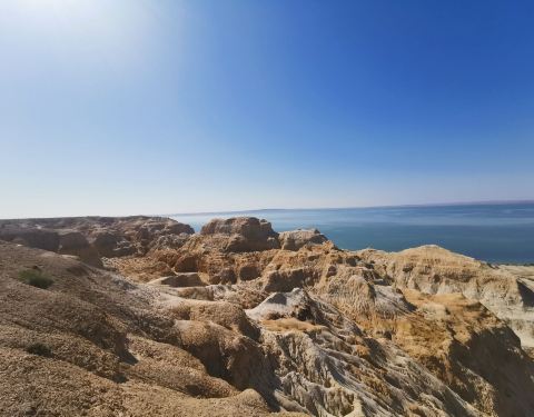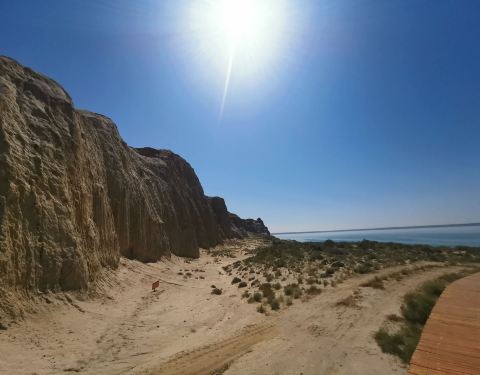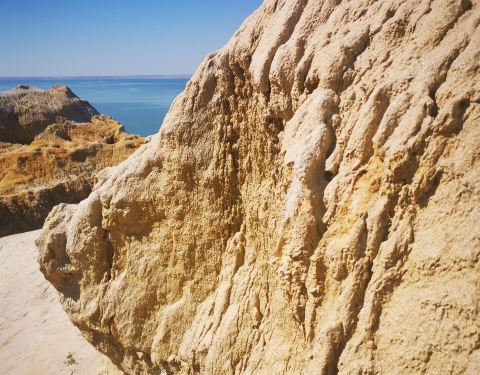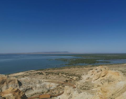 ...悬崖,悬崖上有燕欧的巢,悬崖下就是乌伦古海,这里是鸟儿的栖息地,感觉上比克拉玛依的魔鬼城有生气