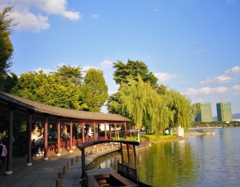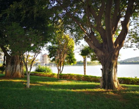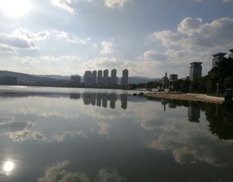 弥勒红河水乡位于云南红河州弥勒市,是“国家园林城市”、“中国最佳生态旅游目的地”。 弥勒红河水乡是集水乡度假、旅游休闲、生态居住等为一体的旅游地。入选2014年全国优选旅游项目名录。 红河水乡风光旖旎,浩渺的湖水周边上庭台楼阁,映衬在绿树丛中,湖面上野鸭戏水,白鹭展翅。围绕在碧波荡漾的湖水周围的京派、徽派、晋派、川西派、江南派、闽南派六大派系民居建筑风格独特,这里小桥流水人家,仿古小街古色古香,一派江南水乡景色…… 目前,这里不要门票,游人也不多,没有熙熙攘攘的烦杂。在这拍拍照片,观赏湖景,或静静地在冬日的阳光下,晒晒太阳,发发呆,都是最好的去处……