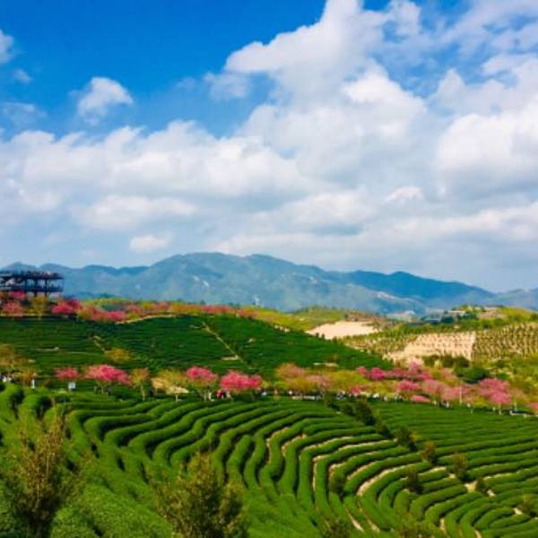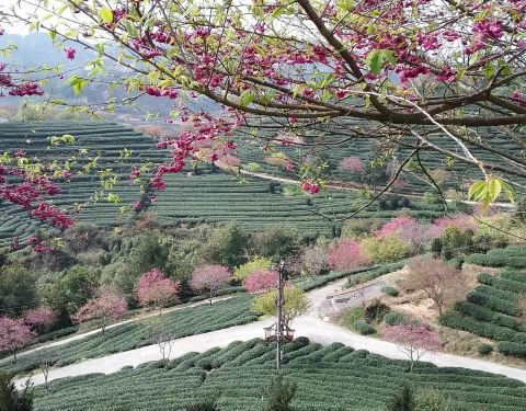 永福台品樱花茶园位于漳平市永福镇后盂村的茶园和李庄村的台缘山庄,是永福第二大樱花园,樱花遍布在高山茶道里,分外迷人。