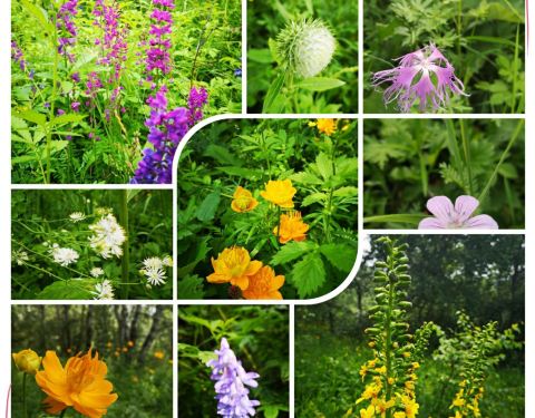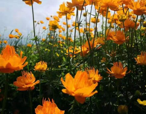 其中金莲花是最娇艳美丽,金黄色的一片璀璨夺目,在微风中摇曳舞天下。各种各样的野花争奇斗艳,美不胜收