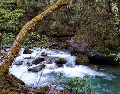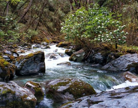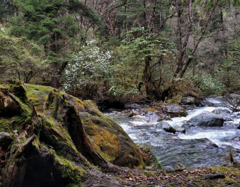 非常漂亮的原始丛林,五一节正是看高山杜鹃花的时候,沿着小河沟有不少的杜鹃花 漂亮非凡,还有非常多的各种植物,特别是苔藓植物,满树都是非常有特色!目前因为是自然保护区,里面没有什么设施,靠大家自己自觉把垃圾带走,不能随便破坏植物采摘等等。