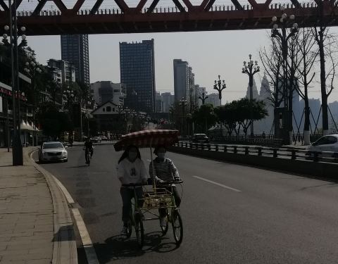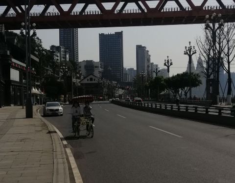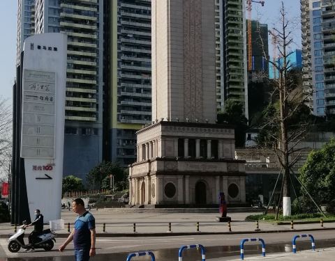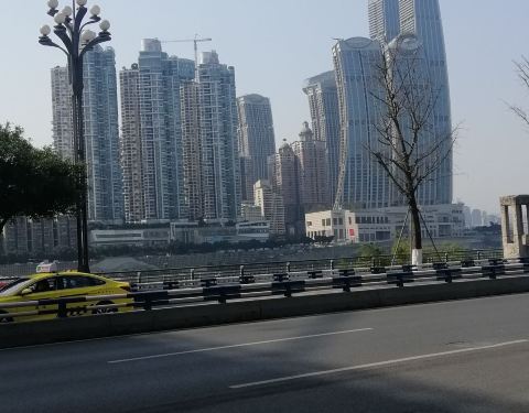 这里位置在南滨路呼归石站附近,两边分别是南滨站钟楼和阳光100