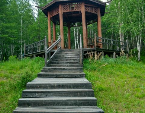 龙山公园位于莫尔道嘎镇东边,有一座山叫龙岩山,依山建成一条直通山顶的木栈道,从而开辟了龙山公园...