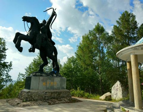 龙山公园位于莫尔道嘎镇东边,有一座山叫龙岩山,依山建成一条直通山顶的木栈道,从而开辟了龙山公园,方便了游人上山观赏风景。山顶有成吉思汗上马的雕像,因为传说蒙古部落就是从这里走出森林走向草原的,莫尔道嘎的蒙古语就意为“出征”的意思。