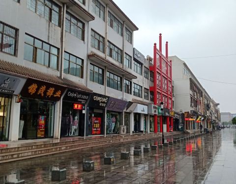 充满热情地反复重播,直钻耳膜,好在这样的店铺不多,街面保持了难得的清静闲适,建筑群高低错落,排列整齐南城门广场,位于武威城中轴线上,由南向北,依次分别是广场---太平鼎---南城门楼,很是气派壮观。广场南端八个大字‘’天马行空,自在武威‘’,气度不凡啊。原城门楼历经风雨战乱,自然损坏,复原后的城门楼倍...南城门广场,位于武威城中轴线上,由南向北,依次分别是广场---太平鼎---南城门楼,很是气派壮观。广场南端八个大字‘’天马行空,自在武威‘’,气度不凡啊。原城门楼历经风雨战乱,自然损坏,复原后的城门楼倍显雄伟,广场更是十分开阔,由图腾柱、凉州八景、太平鼎、泮池、金水桥、月台等组成,是市民休闲健身的重要场所之一。广场东边就是明清步行街,仿古一条街,雨天的缘故吧 ,稀稀落落的没几个人,貌似并没有影响到商家的热情,打折促销的宣传,充满热情地反复重播,直钻耳膜,好在这样的店铺不多,街面保持了难得的清静闲适,建筑群高低错落,排列整齐,丝丝细雨或轻或重地敲打着青石地面,还是悦耳动听的。整条街以服装饮食为主,集观赏悠闲购物餐饮娱乐于一体,街口靠近南城门位置,设有收费停车场,街区中部有自行车电动车三轮车停车区域,无论本地居民还是外地游客,到此一逛,皆有所获,真是不错 。 展开