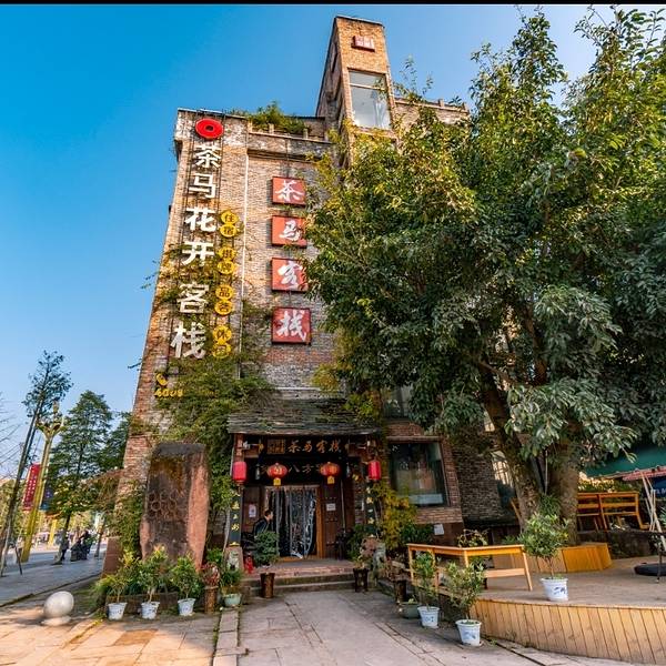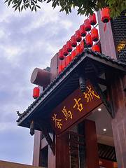 这里是位于雅安名山区的茶马古城,虽然是仿建的古城,但是依然透露着古代文化的气息。古城主要以茶文化为主,每一条街道都有不同的茶馆,有不同种类的茶。除了当地的茶,个个地方的茶也有,甚至,连其他一些国家的茶文化也包含了进来。街边也不乏小吃摊铺,晚上也有各种古典物品卖,也是把茶文化的精髓表现了出来。 从成都出发,1个多小时就到茶马古城。离开大城市的拥堵与喧嚣,一到这里,古远淳朴的建筑,让人仿佛穿越时空,茶马古城几乎所有建筑都被标注了“三雅文化”符号,右边茶文化建筑,左边是马文化建筑,门是“雨”字门,墙上挂的是“雅鱼”,特别惹人眼球的是茶马古城风情客栈。