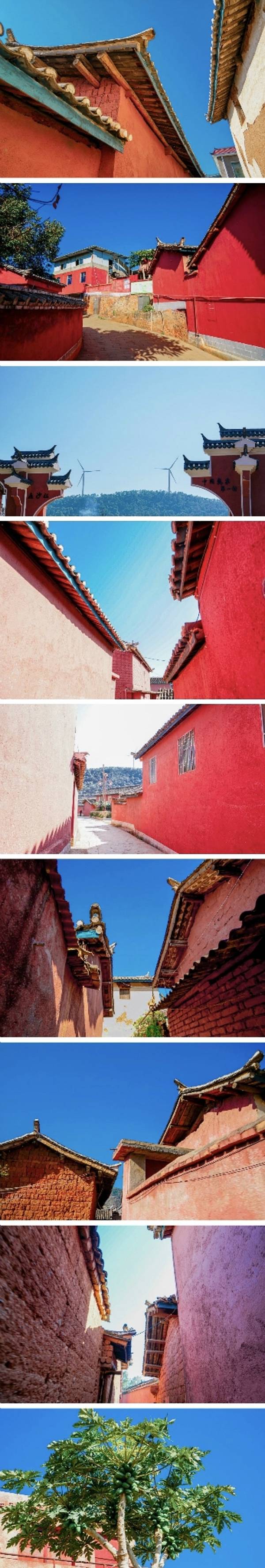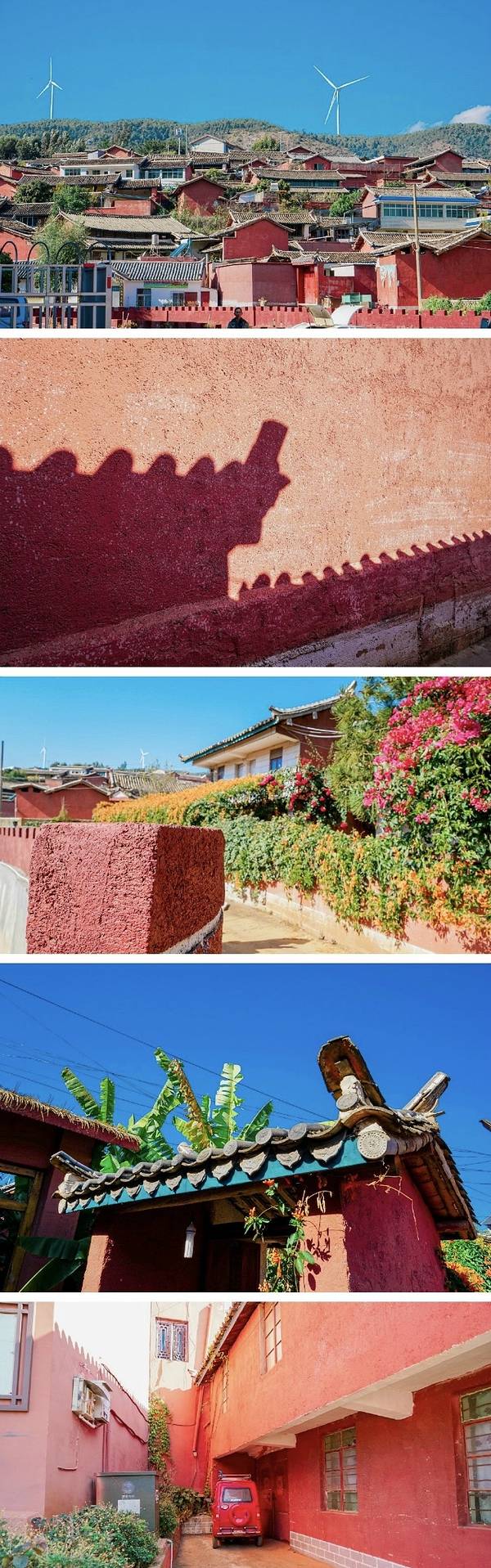 迤沙拉历史文化名村半山之中有一片红色的古建筑,没想到走进发现是一个村庄。所有人都在自己的庭院过着自己的生活古建筑的屋顶,为这个村寨时时刻刻的介绍着自己,山顶风车,山中炊烟,山脚良田,一副美丽的画卷。每家每户几乎墙上的花,挣相开放,就算第一次摄影,也能在这里找到自己的镜头美景这里没有豪迈的波川,只有小小的生活之景。