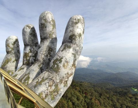 这是巴拿山新的一个景点,超级多人,照相都是一堆人,不过上面的风景超级棒,巴拿山“五指山”是这里比较有名气的标志,一座桥梁躺在“大手”里。