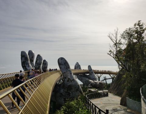 风景很棒,再上去的地方更漂亮,就是人多,特别是韩国人。巴拿山必去的地方 也是广告宣传的 很有特色就是人太多了。云雾缭绕的佛手桥似乎显得更有意境。