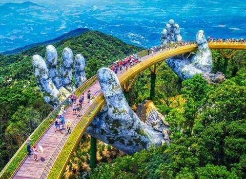 非常美丽巴拿山上面的桥,佛手桥,去的时候很多人,拍照都拍不了,还有好多别的地方,我们买的是套餐,还有自助餐的票,挺好吃的,还有乐园,像小迪士尼。非常美丽。