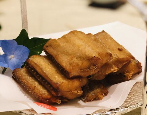 「手工宁波汤圆」 外皮软糯不粘牙赞爆不愧是宁波汤圆,黑芝麻馅儿油润但不失颗粒的口感,口中是意犹未尽的香甜。 「喷香芋艿羹」 最爱芋头了,咸口葱香的芋头羹还是第一次吃,鲜美无比,必点! 「白蟹酱炒年糕」 梭子蟹肥美宁波年糕丁沾满酱汁,非常Q弹好吃。 「招牌十八斩」 又一味鲜甜无比,这个季节舟山的红膏蟹还是如此肥美丰腴,入口即化调味和谐,鲜甜润滑,真的醉了,难得。 「黄金带鱼」 其实从小对带鱼就不太爱吃,但是这例东海带鱼打破了我对带鱼的成见,真的不是冷库出来的那种木木的口感,肉质非常雪白细腻,骨头炸到酥脆。 甬府小鲜·陆家嘴中心店