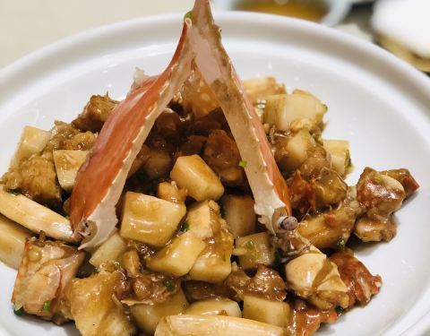 - 「白蟹酱炒年糕」 梭子蟹肥美宁波年糕丁沾满酱汁,非常Q弹好吃。陆家嘴中心店