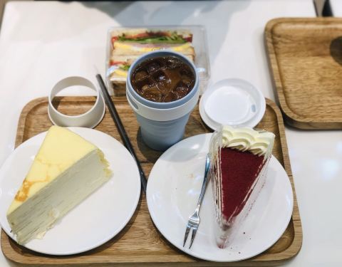 中午和白富美大小姐同事共进午餐,深感荣幸 大家共同选择来Peets,特地乘两站公交,对咖啡也是满有要求的; 俗话说:3⃣️个女人一台戏,真的不假,话题不断,聊劲十足,要不是下午还要上班的话,说个一下午,不是问题,年纪还没到,阿姨妈妈的潜质已初现了吖; 双子星,美式➕短笛,真的好喝,平衡感处理的非常好,苦涩味在这里完全没有噢; 红丝绒蛋糕,不是我点的,同事M说蛮好次的,湿度也控制可以,就是量太大; 千层蛋糕,也不是我点的,大小姐的最爱❤️,不过一块下去还是有点腻,为了不浪费,她都吃完了,勤俭节约是美德; 中午饭点人也挺多的,看来大家都在这里解决午饭!