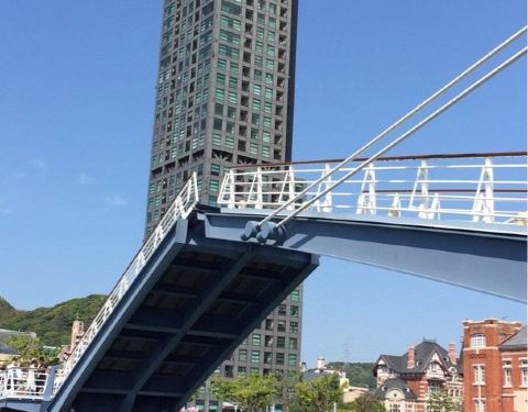 看到吊桥的开合,听说是日本唯一的步行者专用吊桥,一天的开合次数只有六次,想看的话需要算准时间