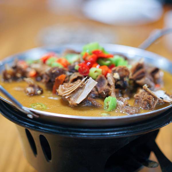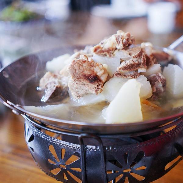 大厨烧的一手地道的好菜,看上去不那么出彩,实际上味道是真真的好。白菜烧豆腐皮包肉,这个豆腐皮真的是太好吃了,应该是是自己手工做的,白菜也带着甜甜的味道。萝卜排骨,萝卜简直是美味!酸菜锅羊肉锅也是各种棒,同行的小伙伴是赞不绝口。