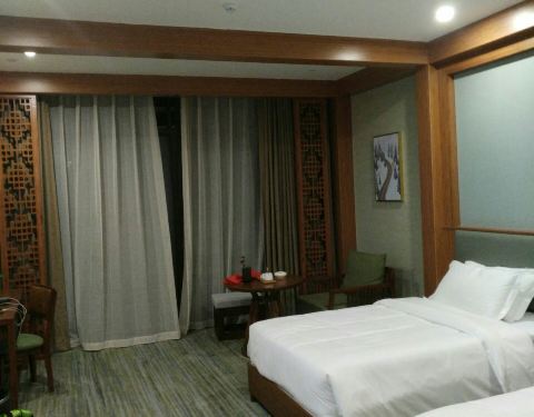 风景美,服务周到,餐厅口味好,自助餐品种丰富。温泉舒适,值得一去。离县城闹市约3公里,开车方便,山中云雾缭绕,宛如仙境一般。大厅气派。适合度假及婚庆。