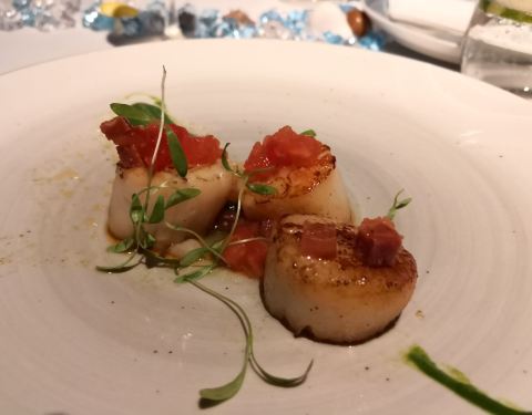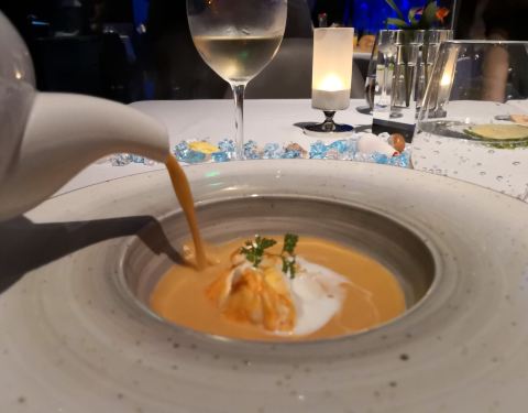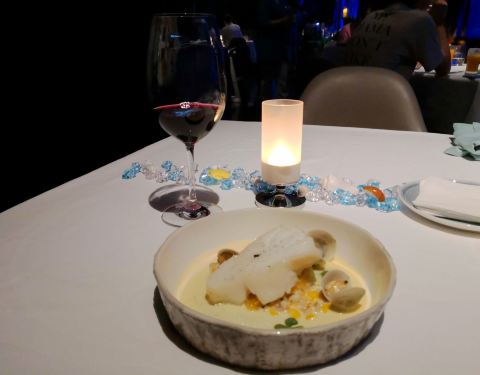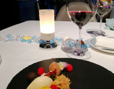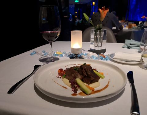 提前预定的餐厅,很期待的一餐。 环境: 一边用餐一边可以欣赏海洋世界风景的餐厅,环境绝对是亮点。 不得不说,包房真的很漂亮。 服务: 服务人员态度极好,每道菜品上桌都会稍微介绍一下。 菜品是套餐模式,颜值挺高的,不过味道略一般,亮点不多。