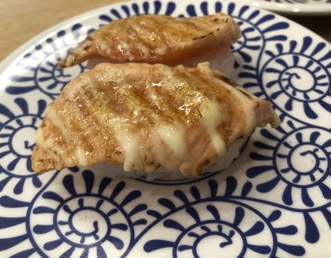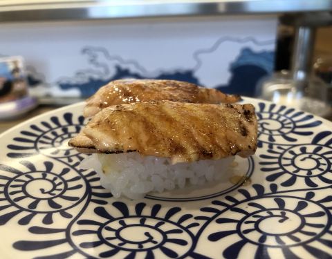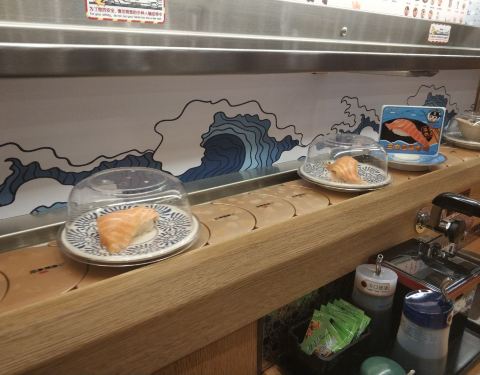 网红店不愧是网红店,工作日的中午依旧大排长龙。 【店堂】 店面整洁,店员时不时就会打扫并注意着卫生状况。 店堂靠近门口有免洗手液供顾客使用。 【店员】 很热情,会询问是不是第一次来用餐,如果是第一次就会...网红店不愧是网红店,工作日的中午依旧大排长龙。 【店堂】 店面整洁,店员时不时就会打扫并注意着卫生状况。 店堂靠近门口有免洗手液供顾客使用。 【店员】 很热情,会询问是不是第一次来用餐,如果是第一次就会跟你介绍餐具位置与注意事项。 结账时如果是手机支付,可以在iPad上点击“结账”,会有店员过来操作,不需要自己跑出去,很人性化。 人性化2在于,有定位送餐小火车,可以在座位上方iPad上点餐,几分钟后就有专属小火车送餐到面前,不需要等旋转寿司转到面前,可以节省时间,并且是新鲜特制的。 【扭蛋】 没扭到,不予评价,生气气。 【牛油果蒸虾寿司】 口感冰凉,爽口。比牛肉果三文鱼寿司来得清爽。 【火炙焦糖三文鱼寿司】 焦糖爽脆,搭配熟制三文鱼,甜蜜蜜的软糯。 【火炙焦糖玉子寿司】 焦糖爽脆,更甜美。 【南瓜蛋挞】 造型别致,与普通蛋挞不同。 口感冰凉,淡淡的甜味。 【鹅肝寿司】 滑嫩,肥美。
