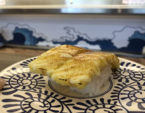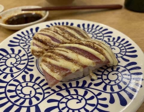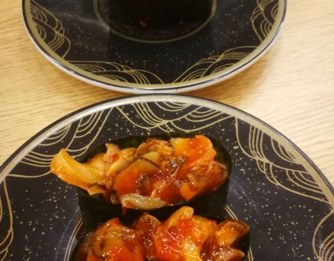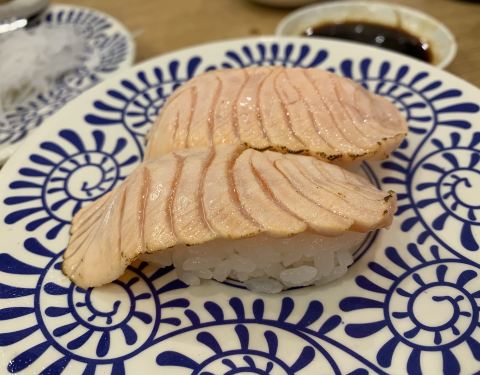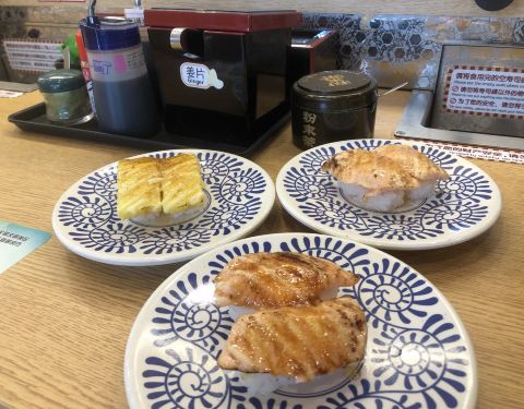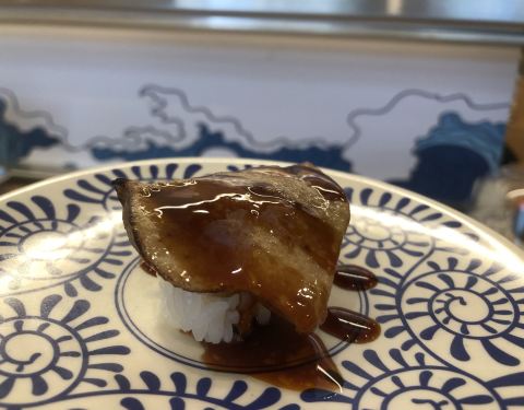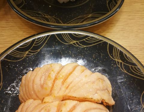 网红店不愧是网红店,工作日的中午依旧大排长龙。 【店堂】 店面整洁,店员时不时就会打扫并注意着卫生状况。 店堂靠近门口有免洗手液供顾客使用。 【店员】 很热情,会询问是不是第一次来用餐,如果是第一次就会跟你介绍餐具位置与注意事项。 结账时如果是手机支付,可以在iPad上点击“结账”,会有店员过来操作,不需要自己跑出去,很人性化。 人性化2在于,有定位送餐小火车,可以在座位上方iPad上点餐,几分钟后就有专属小火车送餐到面前,不需要等旋转寿司转到面前,可以节省时间,并且是新鲜特制的。 【扭蛋】 没扭到,不予评价,生气气。 【牛油果蒸虾寿司】 口感冰凉,爽口。比牛肉果三文鱼寿司来得清爽。 【火炙焦糖三文鱼寿司】 焦糖爽脆,搭配熟制三文鱼,甜蜜蜜的软糯。 【火炙焦糖玉子寿司】 焦糖爽脆,更甜美。 【南瓜蛋挞】 造型别致,与普通蛋挞不同。 口感冰凉,淡淡的甜味。 【鹅肝寿司】 滑嫩,肥美。