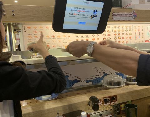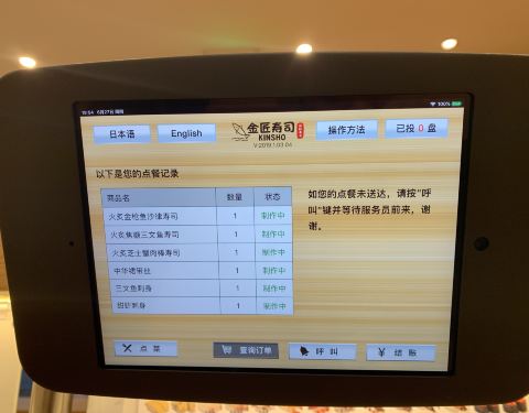 自助pad点餐 还是非常方便的 来过很多次 一如既往的喜欢他们家的味道 点餐后 有自动跑车会在传送带上送餐 去餐后点确认即可 菜单种类还是比较多的 除了寿司 还有刺身 烤物 面条 寿喜锅 甜品等等 满足你的各种味蕾!自助pad点餐 还是非常方便的 来过很多次 一如既往的喜欢他们家的味道 点餐后 有自动跑车会在传送带上送餐 去餐后点确认即可 菜单种类还是比较多的 除了寿司 还有刺身 烤物 面条 寿喜锅 甜品等等 满足你的各种味蕾!