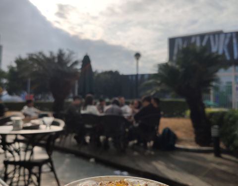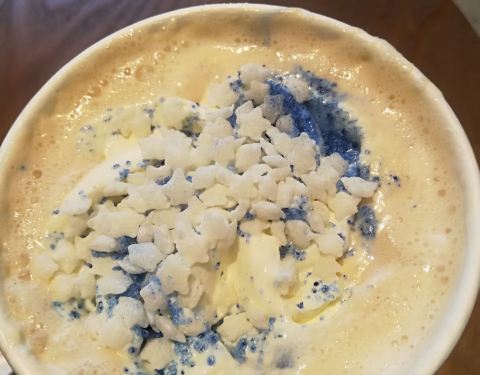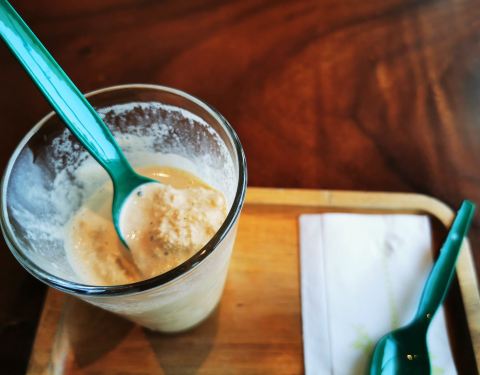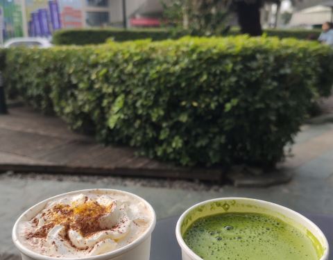 环境是真的好,坐在外面看看珠江晒晒太阳打发时间简直一流,饮品我朋友点了抹茶拿铁,我点了季节饮品...
