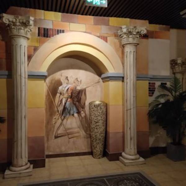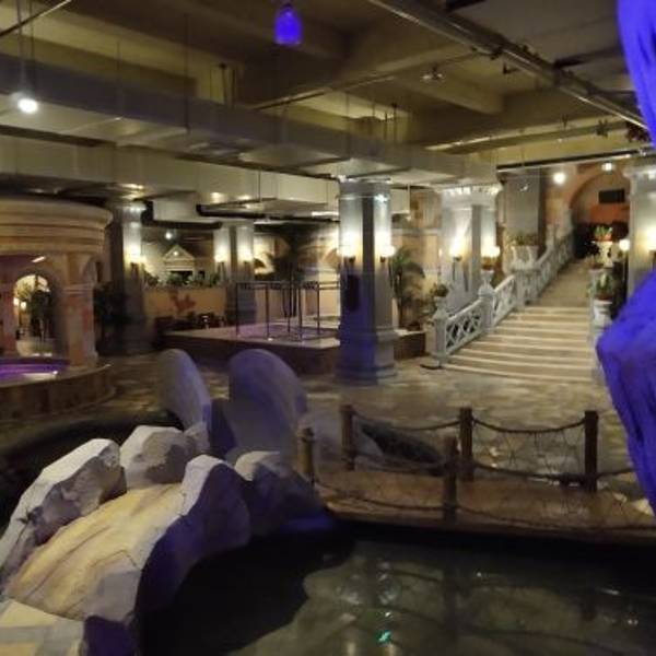 温泉位于蓬莱欧乐堡景区内,在欧乐堡骑士酒店酒店的负一楼,酒店的服务人员配备非常充足,态度很好。 一楼大厅装修非常豪华,而且是骑士主题,酒店非常帅,温泉一共有20,多个池子。 但是不足的是装修味道大,空气流通不畅,没有户外,温泉场,感觉像个大澡堂子。原本打算泡两三个小时,去了一个多小时就觉得非常憋气,撤了。