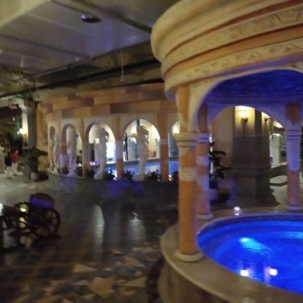 一楼大厅装修非常豪华,而且是骑士主题,酒店非常帅,温泉一共有20,多个池子