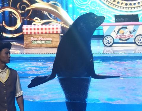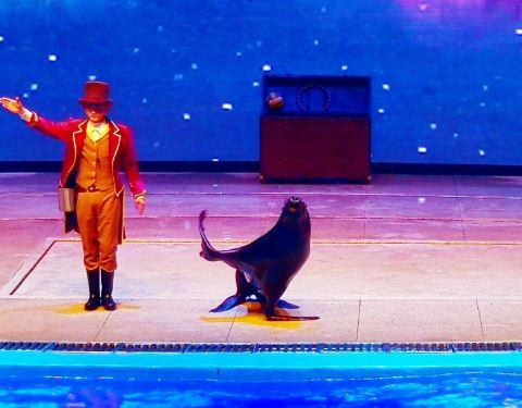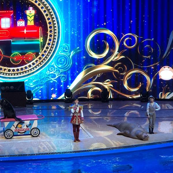 这个剧场也是三个水上剧场中最小的,但是游客却可以更加近距离的看到这些可爱的海象和海狮了这个表演可以算得上是园区里所有表演中最欢快的了。 一只1200多斤重的海象,挪动着虽然笨重却憨态可掬的身体(其实它在水里还是游动的很快的),无论它摆出什么样的造型,看起来都是那么可爱。 还有三只欢快又多...这个表演可以算得上是园区里所有表演中最欢快的了。 一只1200多斤重的海象,挪动着虽然笨重却憨态可掬的身体(其实它在水里还是游动的很快的),无论它摆出什么样的造型,看起来都是那么可爱。 还有三只欢快又多动的海狮,表演欲望很是强烈,每一只都有着自己的拿手绝活,每一个表演都能带给观者一阵阵的欢乐。 这个剧场也是三个水上剧场中最小的,但是游客却可以更加近距离的看到这些可爱的海象和海狮了。 展开