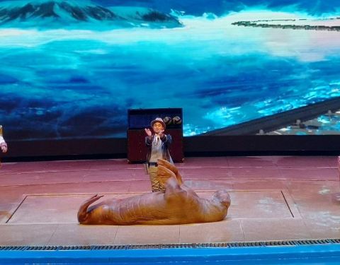 海昌海洋公园内的海象剧场《海象嘻游记》可能是里面最无聊的一场演出了,虽然是说海象,但是大部分讲...海昌海洋公园内的海象剧场《海象嘻游记》可能是里面最无聊的一场演出了,虽然是说海象,但是大部分讲的都是海豹的演出,海象就一只,而且由于海象的体型很大,所以行动起来比较缓慢,演出的效果就不好了。