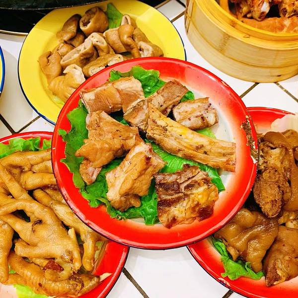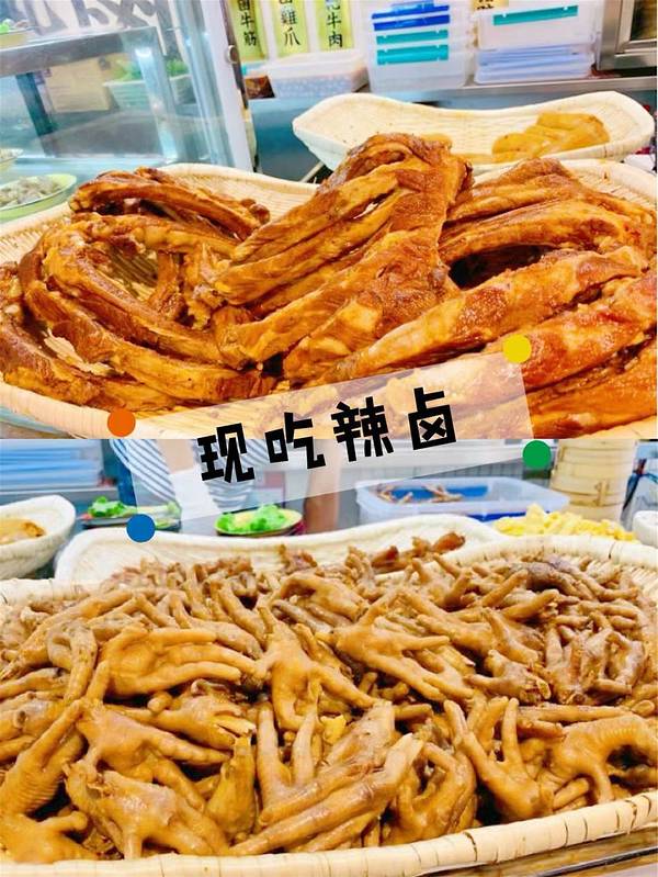 嘻嘻依旧上个全家福,相机先吃。点了 “辣卤耙鸡爪”,辣味适中浅带卤香味,肉眼可耙糯程度,嚼几下即化,一盘一盘仍不住。“辣卤猪蹄”,煮一会又软又糯,胶原蛋白十足。我一个超级怕肥肉的人都觉得不会肥。很粑很糯~入口即化。【辣卤藕片】是真的辣哎,藕片被卤的糯糯的哦,很香。又有新鲜藕的清甜感【卤排骨】非常入味,咸香,拿着啃真的超爽。肉很多,绝对不是吃两口就没肉的那种。还点了这个腐竹~浸满了卤汁的香气,味道浓郁。