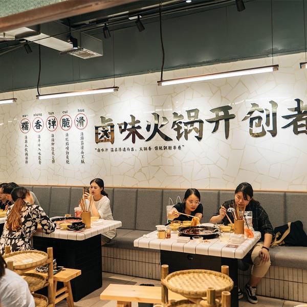 听说是网红卤味火锅开创者,超级火爆的,天天排队,中午排队晚上排队周末更是,还好我们有做功课很早就出发了。 四点半放号的时候就要抢号!不然真的要等超级久。我们后面四点四十取票的,好像七八点我们出来还在等位。真是幸运~大家一定要提前取票!!环境还不错,店铺是中等大小的,门口进去就能看见旁边的卤制作坊和甜点制作间。里面大厅有十几桌的位置。装修是用白色瓷砖来做的,比较干净。