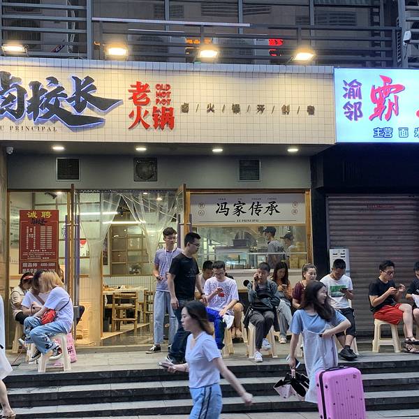 ⚡️重庆火锅千万家,总有一家成你爱。 最近半年都很火的卤校长,排队的阵仗真的很吓人,不排个一两个小时感觉都不好意思说自己吃了卤校长。 之前有周师兄的腰片,卤校长的卤菜,没有什么是重庆人民不能烫的。 [亲亲]个人推荐菜单 「辣卤耙鸡爪」「卤肥肠」「卤猪蹄」「辣卤耙牛筋」「冷锅鸭血」都是很不错的,可以躺也可以直接吃。 他们的锅底也不错,味道浓郁,不容易浑。做旧的瓷盘还是很可以。 [拥抱]服务不是很热情,哈哈,可能孃孃太累了。 他们人均也不贵。 [阴险]关键是他们的甜品还可以,听说现在种类越来越多了,之前的汤圆还是可以的。 [拥抱]下次去观音桥试试。
