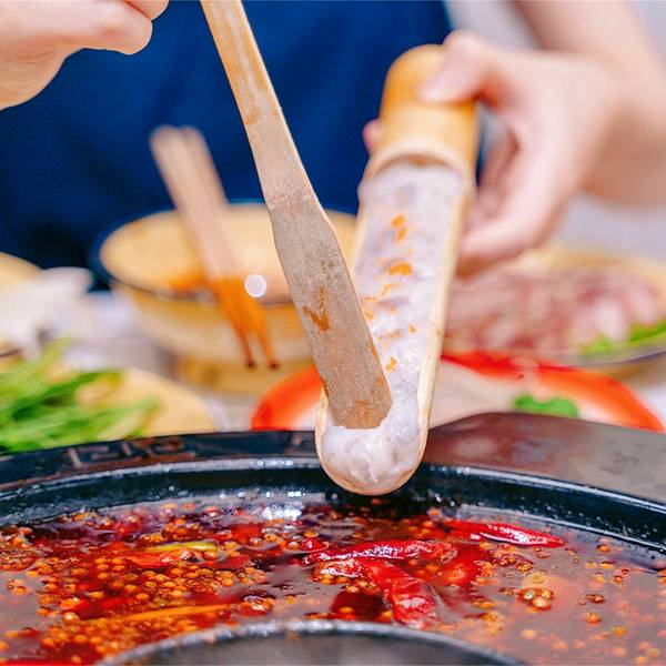 铛铛铛还有一张卤料全家福!我们点了很多好吗?不止前面的卤藕和卤鸡爪。是温热,可以直接吃。非常入味儿,鸡爪软糯入口即化,太美妙。一分咸,少一分淡,控制得好。一点都不辣,小朋友也能放心吃哦。当然也很适合不太能吃辣星人。卤蹄筋香滑,卤肥肠还保持着爽脆,猪脚卤后就是q弹,最爱吃还是卤牛肉,整体肉质细腻有弹性,卤香超级体现得出来,想想这些卤料再带上那香辣,美滋滋他们家的香油,精致小小一瓶子。「鲜虾滑」里面虾仁蛮多的,很q弹!有这个竹筒装起来,也太好看了吧。认证,老板是拍照星人,做起来所有的东西都超适合拍照。