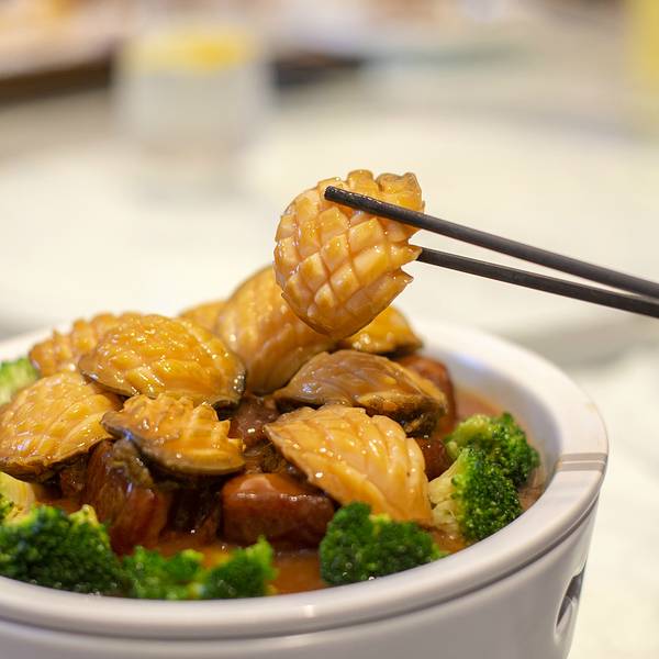 - |味淋南日鲍配樱桃鹅肝^,根据服务员的推荐用餐顺序,先食鹅肝,在用鲍鱼,后品樱桃鹅肝