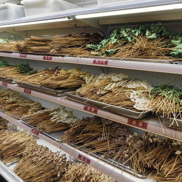 在嘉祥路附近,就在路边很好找。人还挺多的,很热闹。 第一次吃钵钵鸡。这些串串都是新鲜的煮熟的。在红油调料盆里面过一下,再吃。酱汁蛮好吃的,麻辣咸香。 串串中,鸡肉、鸭肠、海带等等挺多串都很好吃。 最后...在嘉祥路附近,就在路边很好找。人还挺多的,很热闹。 第一次吃钵钵鸡。这些串串都是新鲜的煮熟的。在红油调料盆里面过一下,再吃。酱汁蛮好吃的,麻辣咸香。 串串中,鸡肉、鸭肠、海带等等挺多串都很好吃。 最后是称竹签的重量收钱。