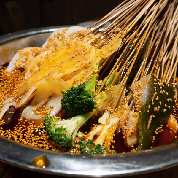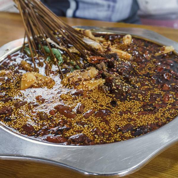 在乐山,似乎万物皆可串 首推的,必然是红遍大江南北的钵钵鸡据说钵钵鸡起源于上世纪80年代,乐山人调制好滋味十足的红油,把煮好的鸡肉浸入红油,放到土窑烧的钵里,挑着出去沿街售卖。那时候人们的生活都还不算...