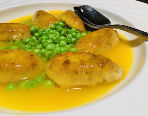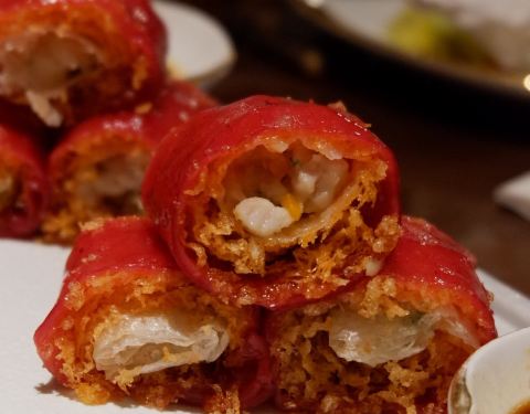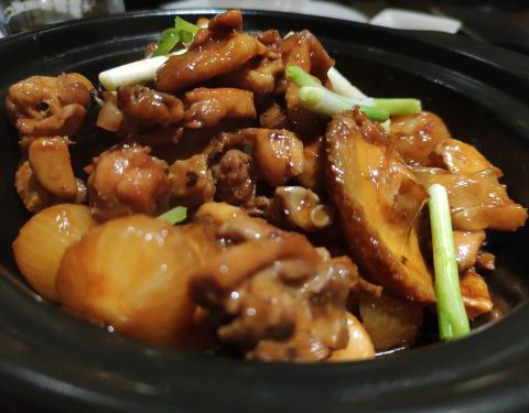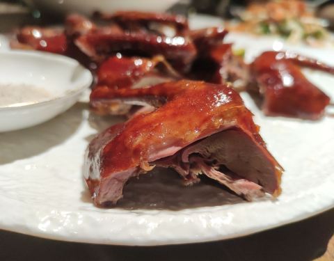 平安中心集中开了好几家粤菜馆,从万象城对面的门进的平安中心,在陈八两边上发现秋粤台的指路牌拐了几个弯找到了地。结果因为来太晚了,还要下到一楼等位。各种经过也是很曲折,工作日晚上不到6点到的店,等到7点30分才吃上一口热饭。 在等位的时候已经点好了菜,不过太晚了,金牌烧鹅和叉烧都没有了。只能等下次再来吃。脆皮乳鸽(68元/份)还有赶紧点上。烤的外皮脆嫩,肉质鲜美,咸淡适中,不用沾调料吃也很ok。 韭黄原只鲜虾肠38元/份,鲜虾的个头很大,搭配韭黄很好吃,要是肠粉皮更薄一点就完美了。 黑椒雪花牛仔骨42元/份,腌制的很入味,牛肉鲜嫩,推荐。 手打鱼腐浸娃娃菜88元/份,这个菜端上来很不起眼,看不出来为啥是店里的推荐菜,朋友解密:看似油豆腐的东西应该是手打鱼肉制作的。口感上也很接近油豆腐,汤头也很鲜美,我们用光盘行动来表达它的好吃。 店内布置的很赞,明档区大部分是活蹦乱跳的海鲜,等位区有开水和糖果,墙上有电源。大厅很宽阔。服务很周到,换盘很及时。