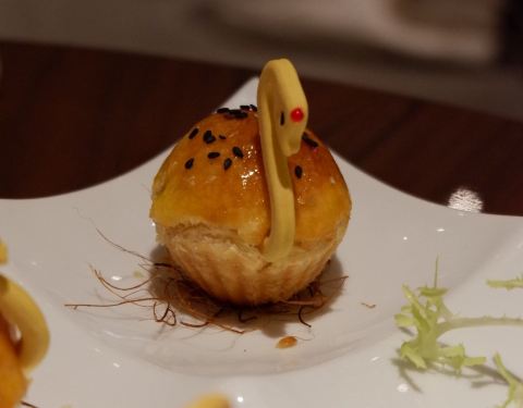 秋粤台 最近被朋友推荐超多次的一家粤菜馆 刚好平安这个地方人不多,就开车来了 停车很方便,震惊到了,个人感觉这里难找 但是生意真的很好,基本都坐满了的感觉。 整体装修环境是非常低调有档次的感觉 每张桌子上都有一个很好看的小狮子 坐下就忍不住要拍一张的感觉。 服务也是跟得上这个档次的,很主动。 菜系其实不止粤菜还包含了一些台州菜。 先要推荐的是点心类的,个人很推荐,有惊喜的感觉。 金网红米脆皮肠,看起来就特别有食欲,一口下去口感层次很丰富,脆感糯感鲜味都有了,很满足。 荷香瑶柱糯米鸡,一开始觉得就是普通糯米鸡一样呢,这个荷叶香味很足,糯米蒸的超烂,入口舒服。 天鹅流沙酥,这个也必须作为必点点心之一了,首先颜值很高,真的会流心!一口下去就爆了,这个感觉真棒。 吃粤菜的话,烧味是必须要点的,烧鹅、蜜汁叉烧、脆皮乳鸽,火候把握的都非常不错,皮都超好吃,叉烧汁很足。 主食的话可以推荐沙蒜捞豆面,量非常足,味道很鲜美!吃了好几碗,但是合适3-4人点更好。 总体来说非常推荐的一家店了,好吃。