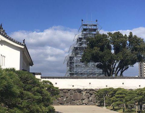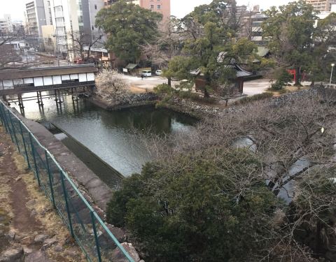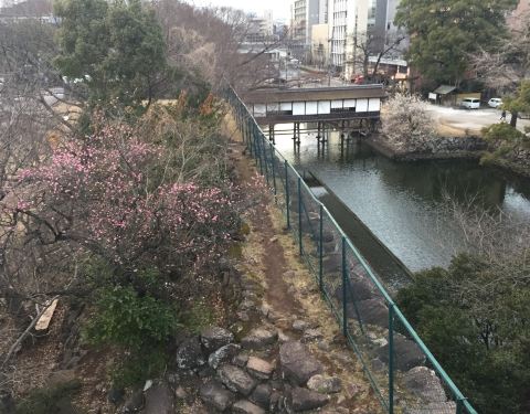 原本以为这个公园可以看到太守阁,走过去才发现没有,原来已经被毁坏掉了。非常可惜,那总得走到最高处拍一拍整个城堡的景色,从地势来看,周边都是坪地,绝对是易攻难守的地方。