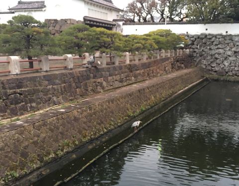 这个城里面没有任何的建筑,咋一看上去就是像一个空城,只有低矮的不成形的城墙,护城河还是有的,但是保卫的作用相当弱,跟大阪城及路程相差太远了。