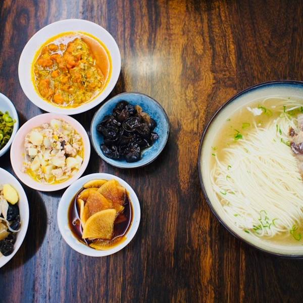 十全路上的面馆,朋友想吃面,就近选了这家。 环境古色古香,就面馆来说还不错的。 枫镇大肉面 这个不错吃,白汤、面条入味。枫镇大肉很大一块,煮到酥烂喷香,五花肉部分肥而不腻,嫩滑细腻;瘦肉部分瘦而不柴,还带着脆骨,一口面一口肉,吃起来暖暖的,很舒服。 秃黄油面 这大概是我吃过的秃黄油面里最普通的一碗了。有点生油气,吃起来偏也整体偏油。面条要先搅拌开,然后加入秃黄油,再次均匀搅拌。但一份 秃黄油 居然不能均匀拌满整碗面? 雪菜毛豆 这款浇头很清爽,朋友蛮喜欢的。 罗汉上素 就是觉得好像哪里查了一口气 清淡得不得了。 木耳、酱萝卜等等小菜都是偏清爽的,都还不错。 茶 店里提供的免费茶饮也蛮好喝。 服务很周到,会主动倒茶,提醒面要早点拌,不然会坨在一起。
